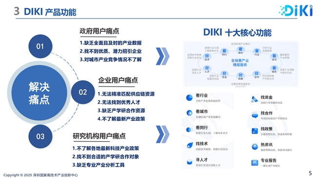 傳統(tǒng)智庫長期受困于數(shù)據(jù)滯后、分析單一、響應(yīng)緩慢等問題,難以適配產(chǎn)業(yè)快速迭代需求。DIKI平臺(tái)通過“數(shù)據(jù)+AI+專家”的深度融合,實(shí)現(xiàn)三大突破:以“全量全時(shí)”的數(shù)據(jù)優(yōu)勢(shì)替代“樣本式”數(shù)據(jù)采集,確保分析依據(jù)的全面性與時(shí)效性;通過“多元專業(yè)”的智能分析模塊,將智庫的“專業(yè)洞察”轉(zhuǎn)化為可實(shí)時(shí)調(diào)用的數(shù)字化工具,讓政企用戶無需依賴復(fù)雜的數(shù)據(jù)分析能力,即可快速獲取精準(zhǔn)的產(chǎn)業(yè)洞察。例如,“AI報(bào)告”功能可自動(dòng)生成深度分析報(bào)告,“產(chǎn)業(yè)發(fā)展對(duì)比”功能支持多區(qū)域、多環(huán)節(jié)數(shù)據(jù)一鍵調(diào)取,大幅提升了智庫服務(wù)的效率與可及性。